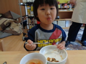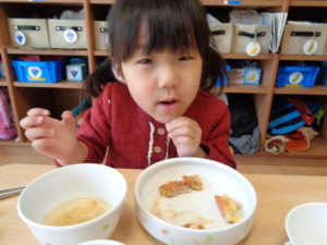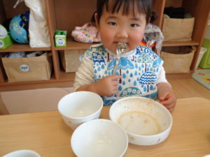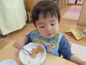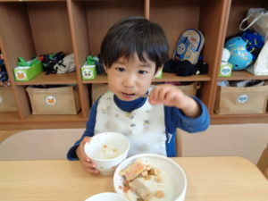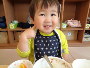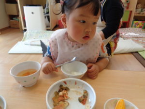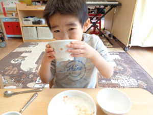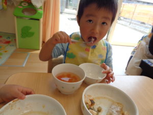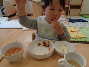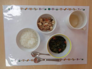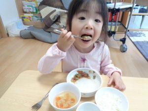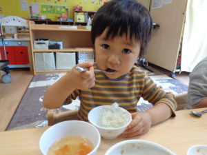 カスタネット組、スズ組、タンバリン組さんは、いつも通り、給食をいただきました☆