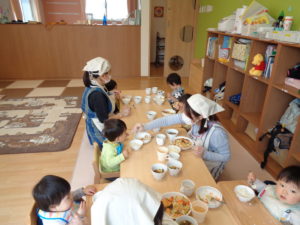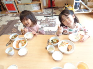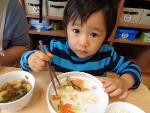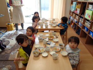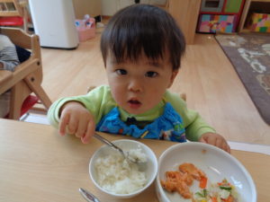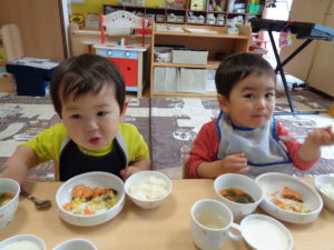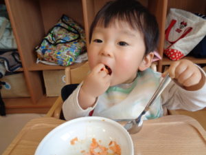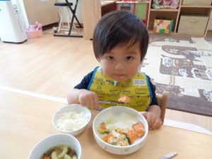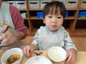 慣らし保育中のお子さんも泣いてしまうことなく、おいしそうに食べてくれていました(^^♪