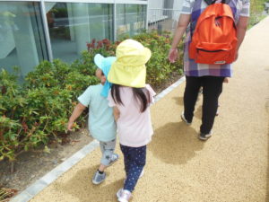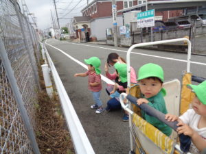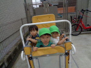 タンバリン組さんとピアノ組さんは新幹線公園に行って遊びました。