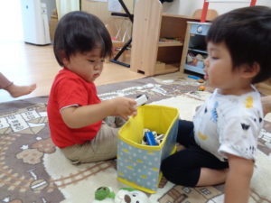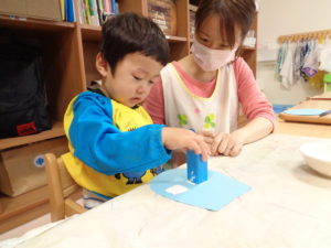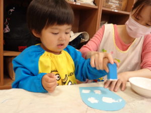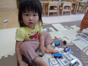 製作を待つ間、電車や好きな玩具で楽しみました。