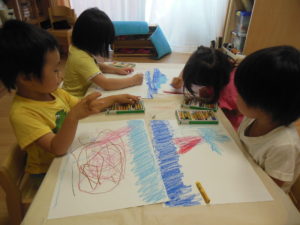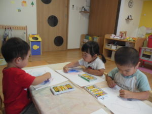 絵本を見た後は、好きな色のクレヨンでお絵描き🎵