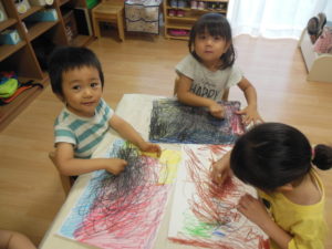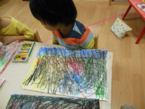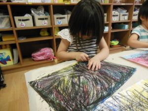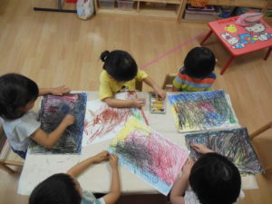 ピアノ組は 先週の続きでクレヨンのスクラッチアートをしました。