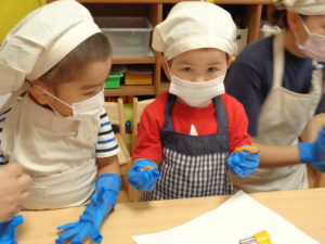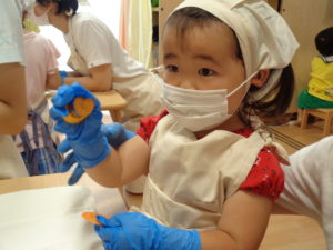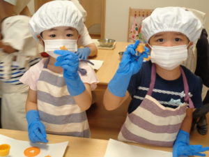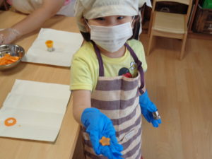 タンバリン組、ピアノ組は 七夕そうめんの飾りにんじんの型抜きにチャレンジしました✨