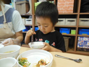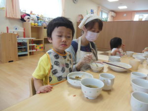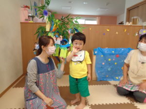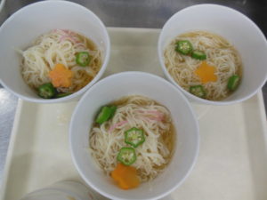 午後のおやつは、【七夕そうめん】でした。ツルツル、残さずよく食べました。