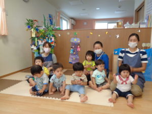 クラスの笹飾りの紹介と七夕のお話を聞きました👂