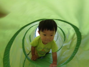 くぐるのが嫌な子はトンネルをのぞいたりしていました。