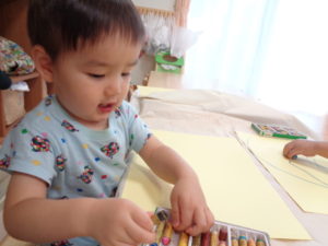 クレヨンでお絵描きもしました🖍 大きな紙にたくさん描いていました!