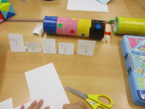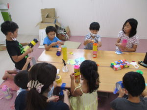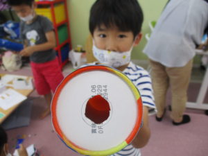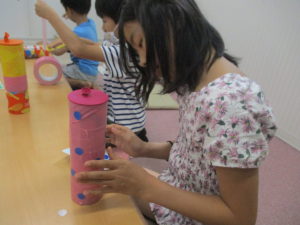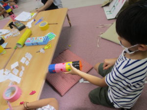 工夫して筒をデコってみたりとカラフルな空気砲ができています。