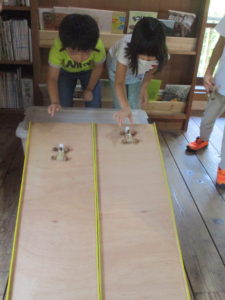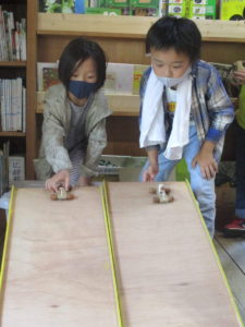 完成したらみんなで順番にどんぐりカーを走らせます!誰が一番早いかな?