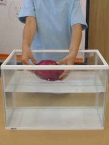 「これはかるいから、うかぶ~!」「おおきいからしずむ~!」