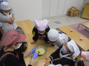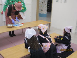 そしておやつの時間!クッキングでクリスマスカップケーキを作りましたよ。
