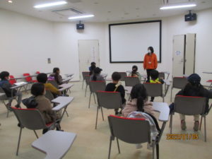 みんな真剣に、地震が来たらどうしたらよいか、大人の人がいなかったらどうしたらよいかなどの話を聞き、日ごろの準備の大切さを確認しました。
