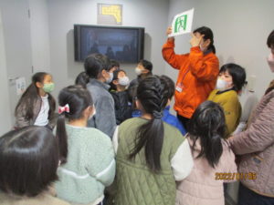 始めに訓練室で防災のアニメを見ました。