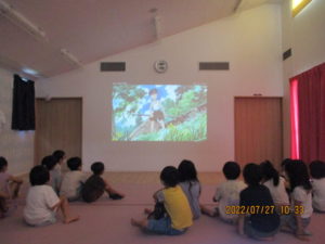 夏休み一回目の園内シアターは、「となりのトトロ」を観ました。
