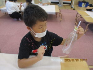 今日は夏休みのプール遊びなどで使える”水でっぽう”を作りました。