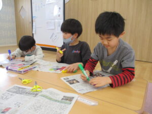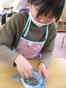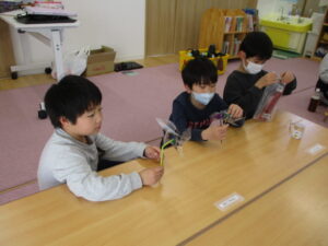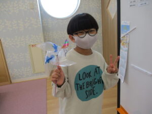 みんなつまようじをさしたあと、中心にテープを貼るのに苦戦していました。