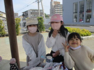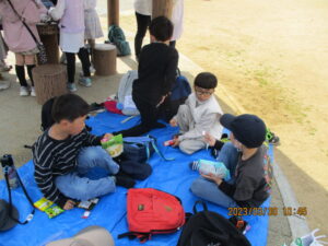 公園に着くと、テーブルの周りやシートに座って、おうちから用意してきたおやつを食べました♪