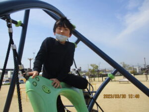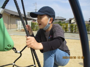 おやつを食べた後は、アスレチックやブランコなどの遊具で遊び、