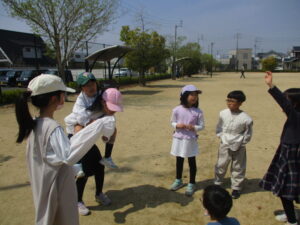 後半はグランドでみんなでおにごっこをして遊びました。