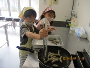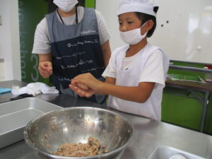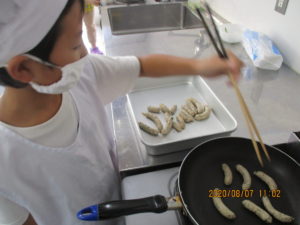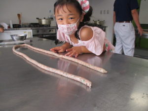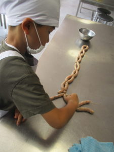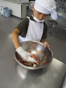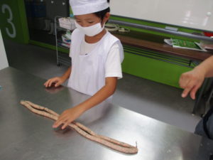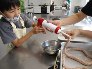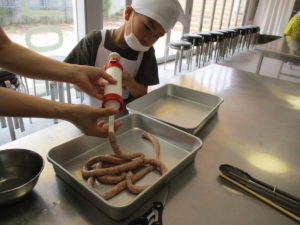 説明を聞き👂いよいよウインナー作りの始まりです。