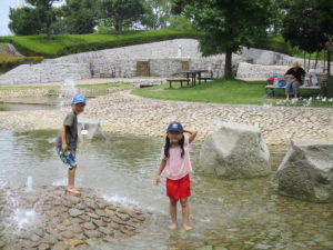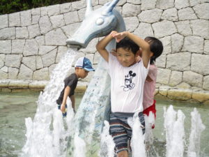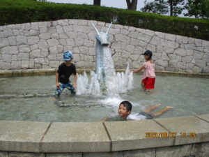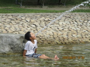 お腹がいっぱいになった後は、さぬき空港公園によって水遊びをしました。