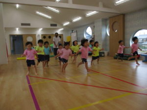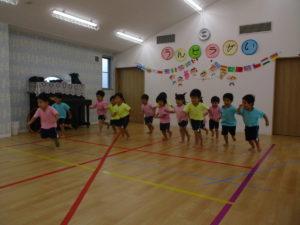 体操教室では、「位置について、よーい、どん!!」で走り、体をしっかりと動かしたり、鉄棒やマットなどを使って運動会の練習をしたりしました☆