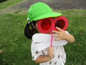 ぱんだ組では、トンボの眼鏡をつくって公園に散歩にでかけたり、