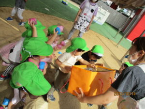 リトミックの後は、園庭でみんなで玉入れをしました!