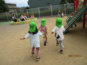 玉入れで遊んだ後は、しっぽとりをしたり、固定遊具に登ったりして