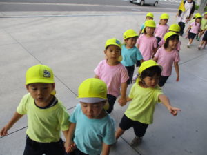 昨年までは先生たちとも手をつないでいたきりん組さん、今では子ども同士で上手に歩けるようになりました。