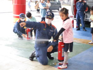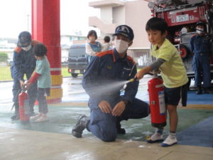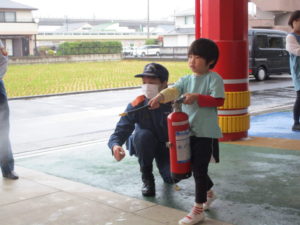 「安全ピンよし!」「ホースよし!」と大きな声で確認しながら、上手に消火することができていました✨