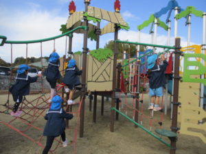 強い風が吹くときもありましたが、少しずつ寒くなっていく季節の変化を感じながら、子どもたちはしっかり体を動かして元気いっぱい遊んでいました。おうちでも今日の様子を聞いてみてくださいね。