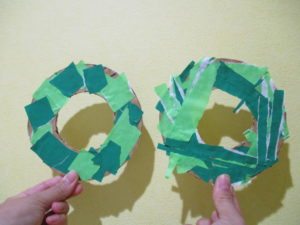 みんなが折り紙を貼ってくれたリースに、どんぐりや紙粘土で可愛く飾り付けをするので完成を楽しみにしていてくださいね💖