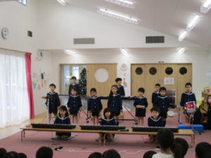 最後に、以上児さんの歌や合奏の発表がありました。