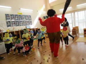 保育園には、かわいい鬼たちと赤鬼がやってきましたよ👹
