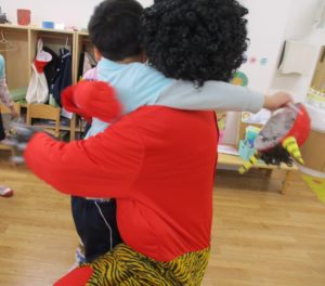 少し怖がっていた子も、握手したり、ハグをして笑顔になりました。