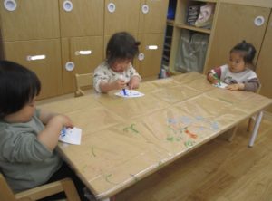 スケッチブックシアターの後は制作でコーヒーフィルターに色付けをしました!
