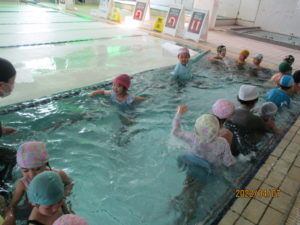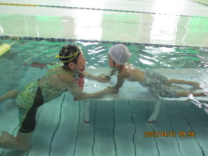 初めての今日は水に慣れることを目標に、顔つけをしたりプールの中を歩いたりしました。