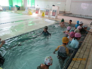 去年、一昨年のらいおん組さんがプールに行くのをうらやましそうに見ていた子どもたち。