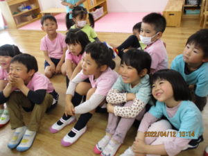 話を聞く姿勢を練習中のらいおん組さん!
