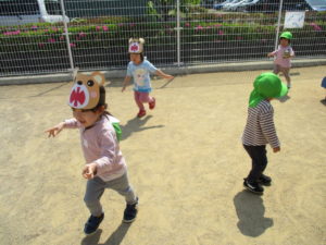 逃げる子も、くまさん役の子も「きゃ~!」と声を上げて楽しんでいましたよ☺