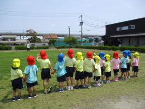 「手をつないで~!」と今日はいつもとは違う「手つなぎだるまさんころんだ」