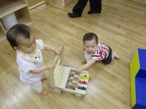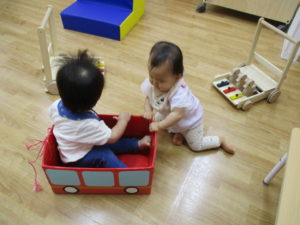運動遊びをしていた間に午前睡をしていたお友だちも最近では、つかまり立ちをしたりずりばいをしたりとさまざまな動きを楽しんでいる姿がたくさん見られるようになってきました😊