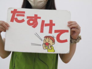 また、「いやだ」と言うだけではなく、「たすけて」と言ってまわりに知らせることがとても大切だというお話も聞き、大きな声で「たすけて」と言う練習もしました。