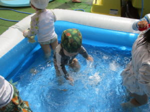他にも水を体全体で感じて楽しんでいる子もいましたよ🥰