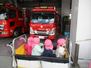 リトミックの後は、消防署までお散歩に出かけました。