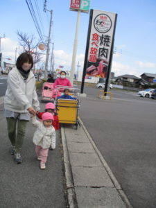 歩行がしっかりしてきた子は先生と手を繋いで歩いて行きましたよ🚶♀️