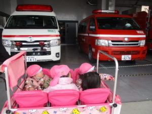 消防署に着くと「お!お!」と指さしながら、とっても嬉しそうに消防車を見ていた子どもたちでした🥰
