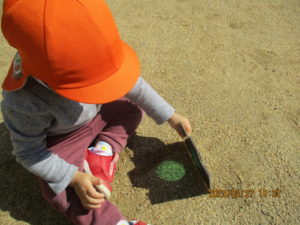 保育者の真似をして「色が写っているね」と地面に写る光の色を楽しんでいましたよ♡