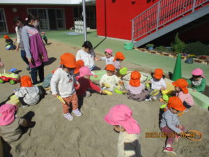 今日は砂場が大人気✨型はめやスコップを友だちを上手に貸し借りして楽しんでいました☺